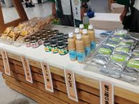 海の日7月15日(月)にイオンモール白山 西コートで「SUISEIマルシェ」を開催しました。農場でとれた新鮮夏野菜、鉢花、翠星クッキーをはじめとする加工品、模擬株式会社翠星ファクトリーのスイーツなどを販売しました。