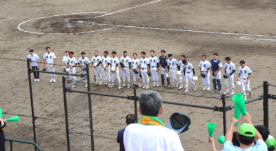 7月11日(木)12時10分か石川県立野球場で野球部夏の県大会が行われました。 対戦相手は北稜高校、試合結果は1対8。1回戦敗退となりましたが、応援団の声援を受けて大差になっても最後の最後まで諦めない選手たちの雄姿に、胸が熱くなりました。
