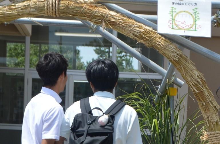 その正体は、生物資源コース3年次生男子の課題研究班が制作した「茅の環くぐり」の環。