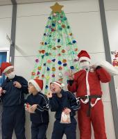 最後に、自分たちで作ったクリスマスツリーの前でサンタさんと記念写真を撮るなど、楽しい時間を過ごすことができました♪
