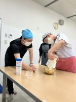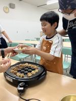 ホットケーキミックスと牛乳を混ぜたり、自分の好きな具材を入れたり、スイーツたこやきを転がしたりすることを分担して調理しました。