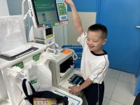 小学部で「ゲンキー宝立店」に買い物学習に行きました。おうちの人に頼まれたもの、自分の好きなお菓子を買いました。子どもたちは、画面をタッチしたり、バーコードを読み取ったりするセルフレジで買い物をすることが楽しかったようです。