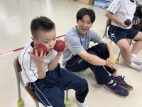 10月31日(金)、小学部でハロウィンパーティーを行いました。前日にはマントを作り、当日はお菓子を入れるための「かぼちゃバッグ」を製作しました。子どもたちは作った「マント」を羽織り、「かぼちゃバッグ」を持って、先生方に「トリック・オア・トリート!」「おかしください」「ちょうだい」など、それぞれの言葉で伝えながら、お菓子を受け取ることができました。その後、教室でお菓子を美味しく食べることができました。