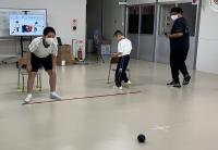 大阪に拠点を置く車いすバスケットボールチームのSAKAIsuns(サカイサンズ)のみなさんが珠洲分校に来てくれました。自己紹介をした後、ボッチャを行いました。チーム対抗戦では、引いたカードの絵柄と同じ絵柄に向けてボールを投げ、上手くいったりいかなかったり。大いに盛り上がっていました。休み時間には、バスケットボールでパスをするなど、最後まで楽しい時間を過ごすことができました。