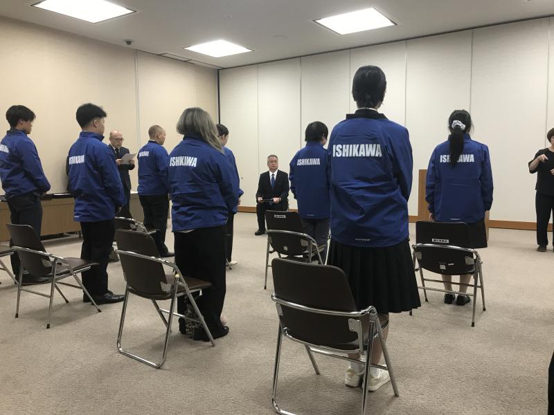 昨年度アビリンピック石川大会接客部門1位の本校生徒が、愛知県で開催される第45回アビリンピック全国大会へ出場することとなり、石川県庁で行われた壮行会に出席しました。