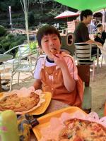 10月15日(水)に、ケロンの小さな村へ行きました。気候にも恵まれ、子どもたちも喜んですべり台や遊具などで遊んでいました。お昼は、ピザ焼き体験を行い、一人一枚ピザを焼いて食べました。生地を伸ばし、トマトやチーズなどをのせ、美味しいピザを作ることができました。自然のなか、いっぱい遊んで、自分で作った出来立てのピザを食べて、とても素敵な時間となりました。