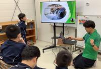 金沢星稜大学の清水先生と学生の皆さんが来校され、プログラミング体験教室が行われました。ドローンと追いかけっこしたり、VRゴーグルで海の中を潜ってみたり、線を結んでその上を走るオゾボットの体験をしたりとどれも新鮮で楽しく体験している児童生徒ばかりでした。清水先生、学生の皆さんありがとうございました。