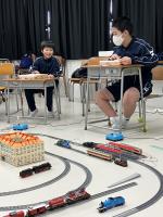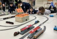 「遊びの時間」に東京のボランティアの方やボラキャンすずの方が鉄道模型を作ってくれて、一緒に遊びました。