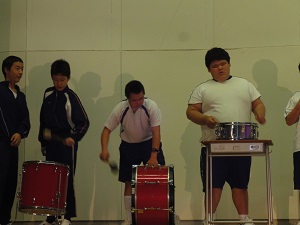 中学部では、わらしべ長者の劇をしました。楽しそうに踊る演技や迫力ある馬など、とても面白く楽しい劇でした。音楽発表では、手話で歌ったり、中学部全体の太鼓の演奏なども迫力がありました。