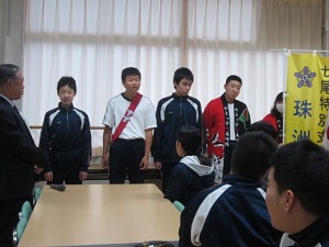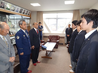 珠洲警察署長、珠洲交通安全協会の方が来校し、