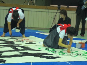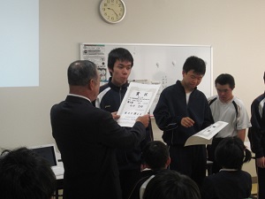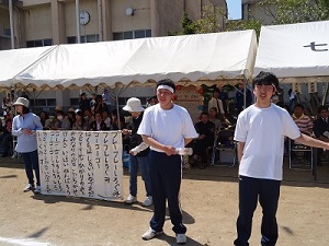 生徒会を代表して3名の生徒がたすきを贈呈され、