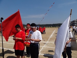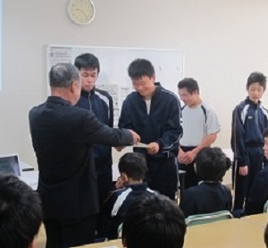 学校を代表して小学部6年の神谷鉄生さん、中学部3年の前壮馬さんが
