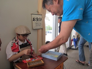 たくさん売れました。生徒たちは商品やお釣りの受け渡しを