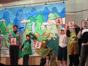 大太鼓を使ったりと場面に合わせて効果音も取り入れました。