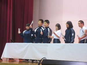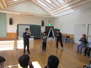 2月5日、全校集会で体育委員会の発表をおこないました。