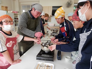 昨年に引き続き、地域の方々のご指導をいただきながらのクッキング。