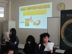 体の仕組みや運動の効果についてクイズ形式で発表しました。