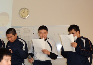 2月26日(月)、全校朝会で高等部の発表がありました。