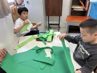 7月に入ってからの生活単元学習は、七夕会に向けて短冊に家族の人と考えた願い事を書いたり、飾りを作って飾ったりしました。みんな笑顔で自分の願い事を笹に飾っていました。
