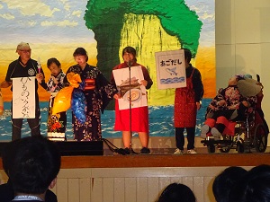 中学部では、わらしべ長者の劇をしました。楽しそうに踊る演技や迫力ある馬など、とても面白く楽しい劇でした。音楽発表では、手話で歌ったり、中学部全体の太鼓の演奏なども迫力がありました。