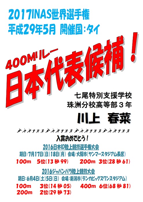 高等部の川上さんが強化選手に指定されました!