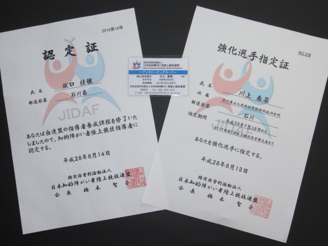 坂口教頭も知的障がい者陸上競技指導者に認定されました。