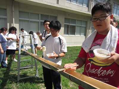 清掃作業後はレクリエーションで流しそうめんを行いました。