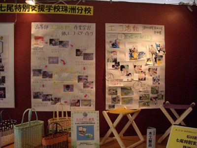 日々の活動や中・高等部の作業作品、エコ活動や運動活動の様子もパネル展示されています。