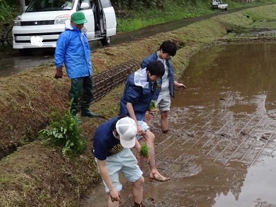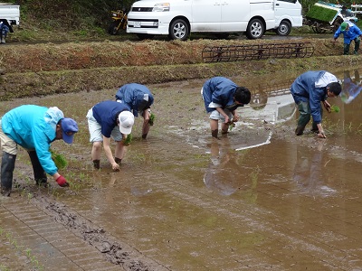 先日、地域の方と一緒に田植え作業を行ってきました。