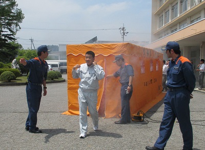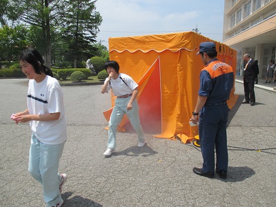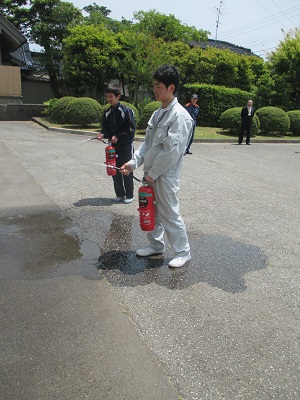 また、消火器の使い方も学び、実際に消火訓練をしました。