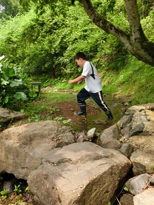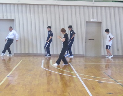 狂言特有の歩き方、走り方、声の出し方やダンスなどを教わり、