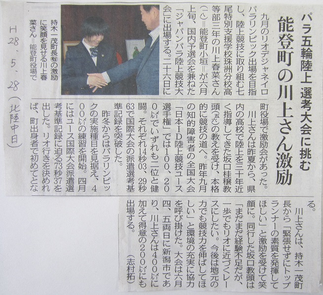 ※事前練習会の様子が5月24日(火)の北國新聞に掲載されています。