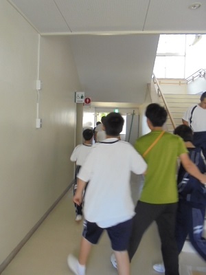 机の下に隠れたり、しゃがんだり安全行動を行った後、校舎3階へ避難しました。