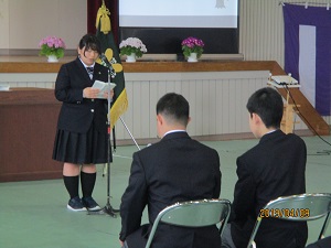全校生徒を代表して、生徒会長の向井悠樹くんが