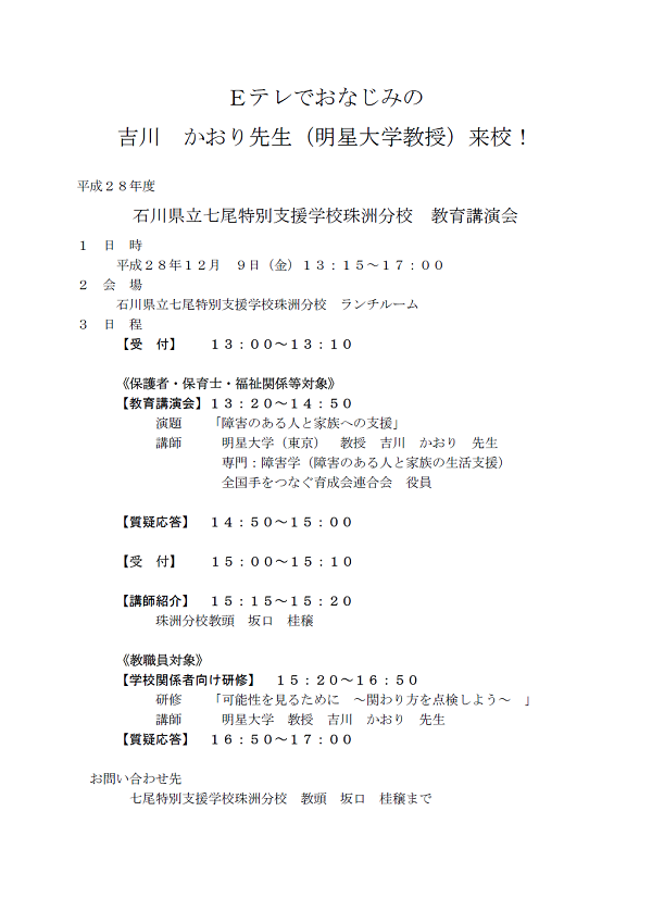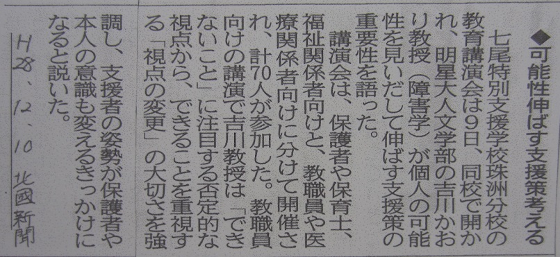 ※教育講演会についての記事が12月10日(土)の北國新聞に掲載されています。