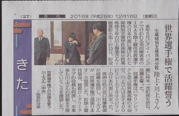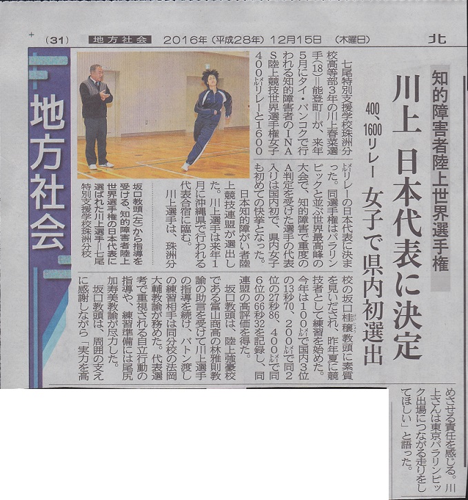 ※日本代表決定についての記事が、12月15日(木)の北國新聞、北陸中日新聞に掲載されています。