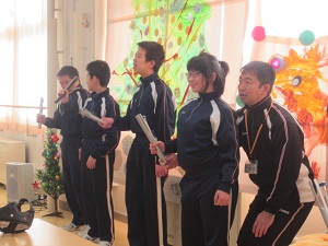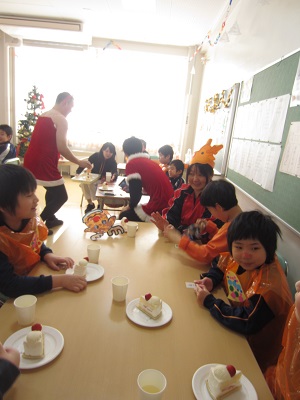 12月16日(金)にクリスマス会がありました。雪が積もり、絶好のクリスマス日和!会場は素敵な飾りがつるされ、とても賑やかで楽しい雰囲気でした。小学部は「ダンス」、中学部は「トーンチャイムの合奏」、高等部は「合唱と合奏」を披露しました。素敵な音楽が響き渡り、とても素敵なっクリスマス会になりました。みんなで美味しいケーキを食べた後は、サンタさんも登場し、皆にプレゼントを持ってきてくれました。