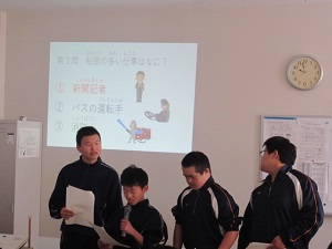 体の仕組みや運動の効果についてクイズ形式で発表しました。