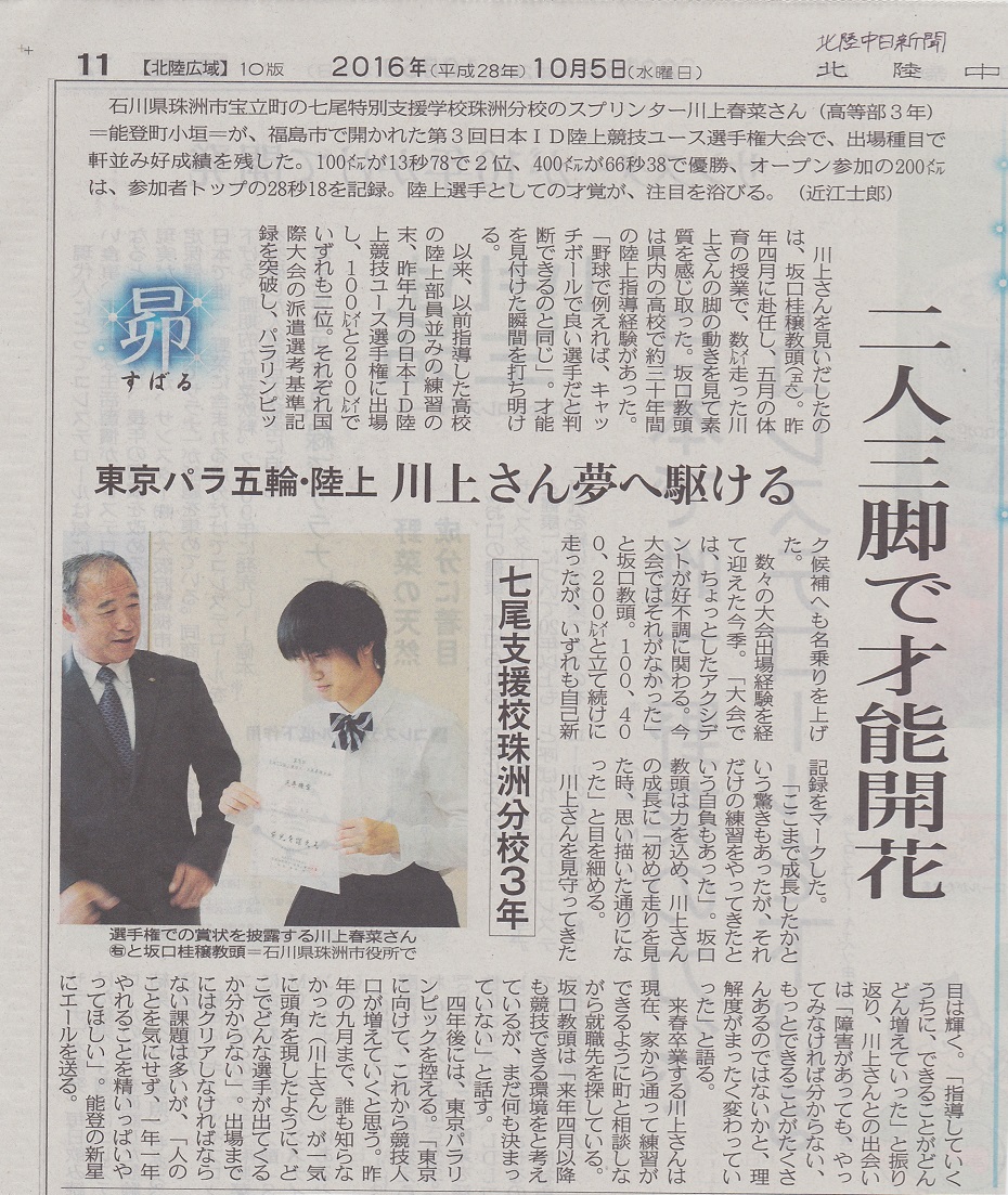 高等部3年の川上春菜さんと坂口教頭の記事が掲載されました。