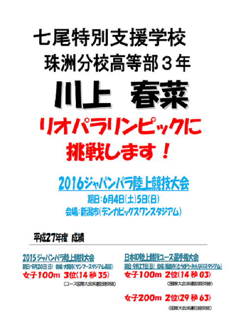 高等部3年の川上春菜さんが、6月4日(土)5日(日)に