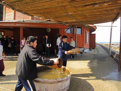 珠洲市仁江海岸の「すず塩田村」で海水撒き体験をしました。
