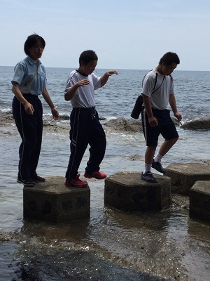 6月21日(水)22日(木)、能登少年自然の家で中学部宿泊体験学習をしました。今年初めての宿泊学習にみんなウキウキ!石と貝の壁飾り作りやレクリエーション、海の生物観察と、盛りだくさんの内容でしたが、みんな協力してがんばりました。もうすっかり仲良くなりました。