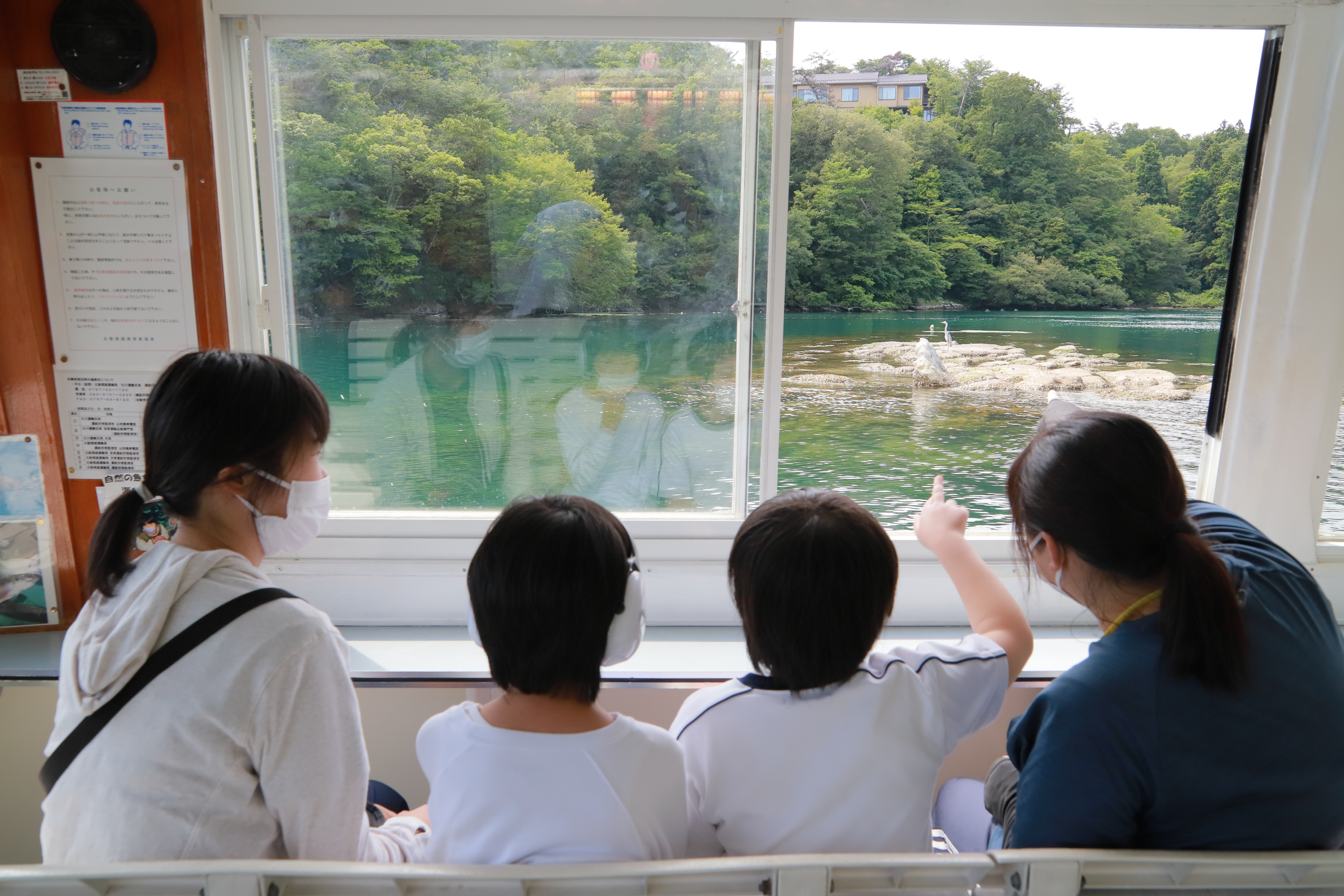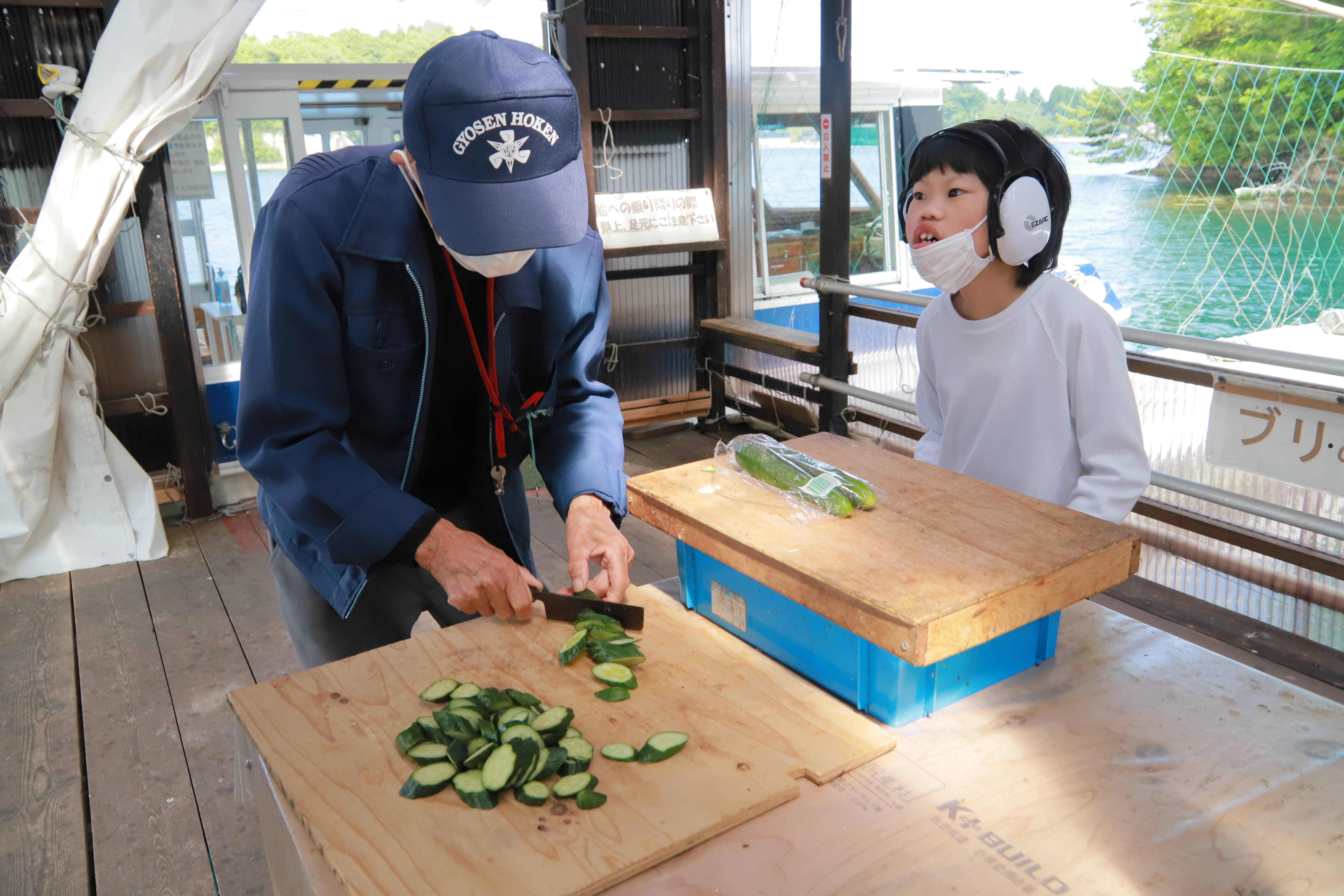 6月10日(金)にイカの駅つくもーると,九十九湾の遊覧船に行きました。今年は新型コロナウイルス感染症の影響で宿泊学習ができませんでした。午後の短い時間でしたが,子どもたちはつくもーるのイカキングで遊んだり,遊覧船を楽しんだりすることができました。特に,遊覧船では生簀で魚に餌やりをしたり,タコを触ってみたりして貴重な体験になりました。