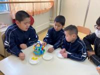 生単の時間に黒ひげ危機一髪ゲームをして、お隣の宝立小中学校に春探しに行きました。新たなメンバーを迎え、桜の下で写真を撮ったり,遊具で遊んだりしました。