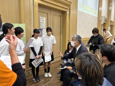 1回目の発表では、ちょうど山田 利明加賀市長が来られ、庄小の発表を聞いてくださいました。