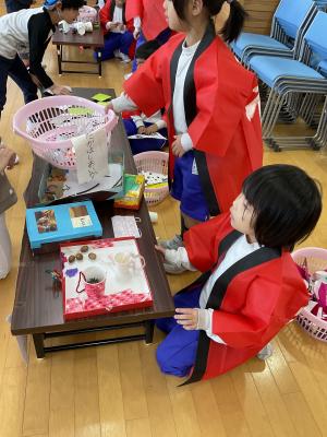 1年生は、運動会でも使ったはっぴを着て、年長さんに
