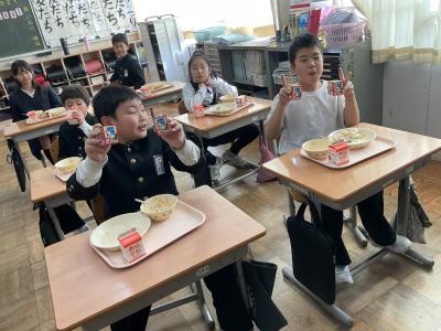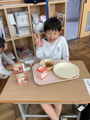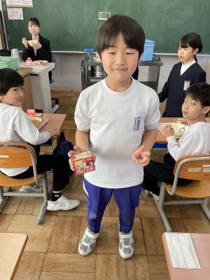 12月23日(火)、2学期給食最後の日です。給食に、子ども達が楽しみにしていたケーキが付きました。教室をのぞくと、余ったケーキの争奪戦!ケーキじゃんけんが始まっていました。 そして、勝利のケーキをもらえた子が。とっても嬉しそうでした。