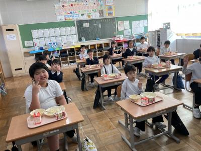 7月16日(水)には、全校でたてわり給食を行いました。この日は、カレーライスの日。各教室や特別教室にたてわりグループで集まって、6年生が企画したクイズやしりとりなどをしながら、楽しく給食を食べました。