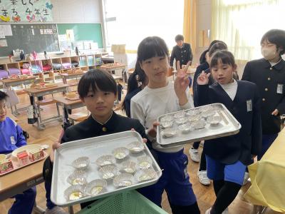 そして、4年生からは、先日行われた6年生の「庄フェスティバル」と、5年生の「お米レストラン」のお礼にと、4年生が作ったべっこう飴がプレゼントされました。