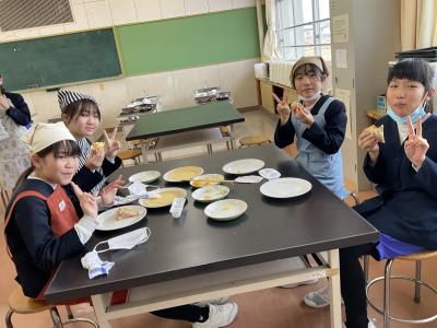 金曜日に招待する側だった6年生も、この日はお客さんとしておにぎりを頬張り、大満足!